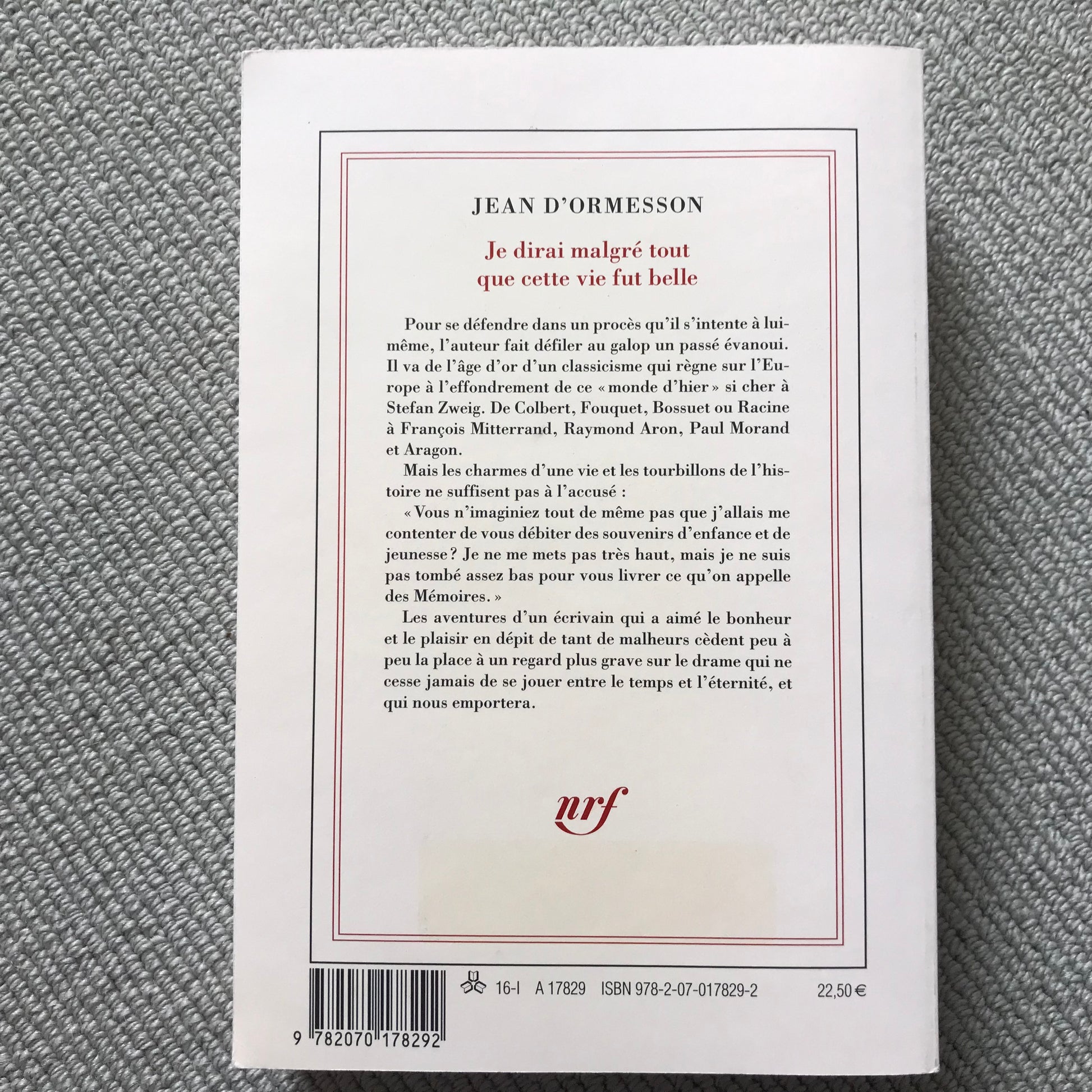 Ormesson d’, Jean - Je dirai malgré tout que cette vie fut belle