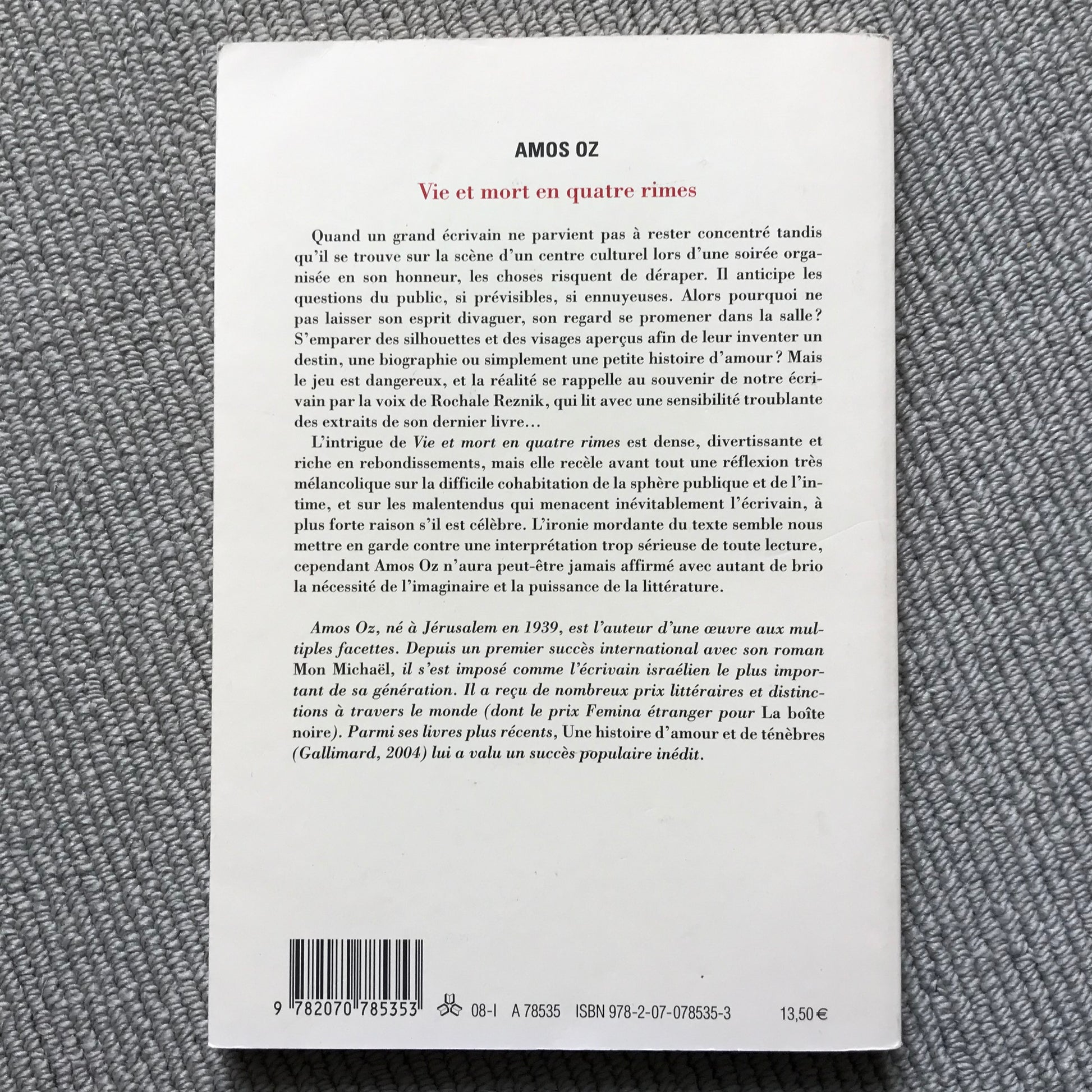Oz, Amos - Vie et mort en quatre rimes